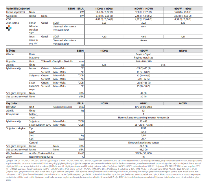 Daikin Altherma ERLA-D Serisi Sadece Isıtma Duvar Tipi İç Ünite (Trifaze)