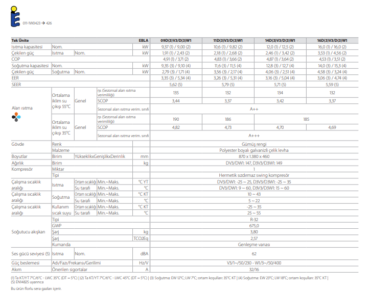 › İlave ısıtma için Dahili 3 kW elektrikli yedek ısıtıcı veya ayrı bir yedek