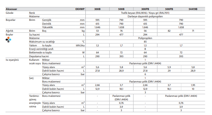 › 300 ve 500 litrelik modelleri mevcuttur